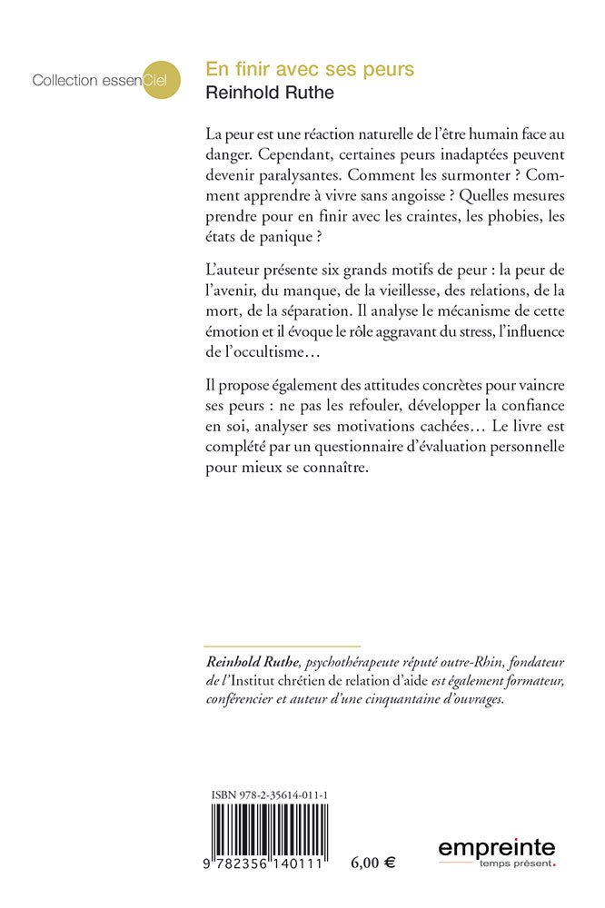 Il propose également des attitudes concrètes pour vaincre ses peurs : ne pas les refouler, développer la confiance en soi, analyser ses motivations cachées... Le livre est complété par un questionnaire d’évaluation personnelle pour mieux se connaître.