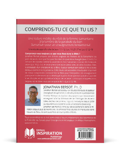 Jonathan Bersot propose une lecture originale de l’histoire de la Samaritaine au puits de Jacob, récit que l’on peut lire dans le quatrième évangile (Jean 4.1-42). En utilisant de manière inédite la parabole du bon Samaritain comme clé d’interprétation (Luc 10.25-37), le texte prend une autre saveur avec un sens nouveau. Avec la pédagogie d’un enseignant de la Bible, l’auteur conduit son lecteur à lire le texte biblique comme il ne l’a jamais lu. Cette étude est accessible à tout public et permet de mieux comprendre comment lire la Bible pour l’interpréter. Un enseignement pratique et moderne est aussi développé à partir d’une question que Jésus a posée à ses disciples et qui synthétise la leçon de ce texte : « Pourquoi m’appelez-vous Seigneur et ne faites-vous pas ce que je dis ? » (Luc 6.12-49).