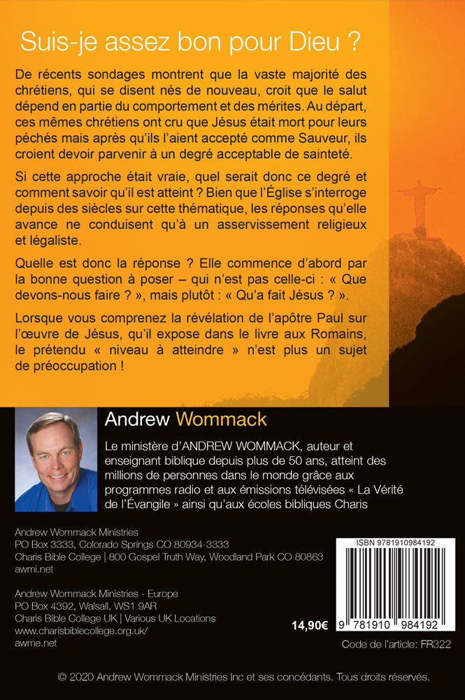 Suffisamment bon pour Dieu ? De récents sondages montrent que la vaste majorité des chrétiens, qui se disent nés de nouveaux, croit que le salut dépend en partie du comportement et des mérites. Au départ, ces mêmes chrétiens ont cru que Jésus était mort pour leurs péchés mais après qu’ils L’aient accepté comme Sauveur, ils croient qu’ils doivent parvenir à un degré acceptable de piété...