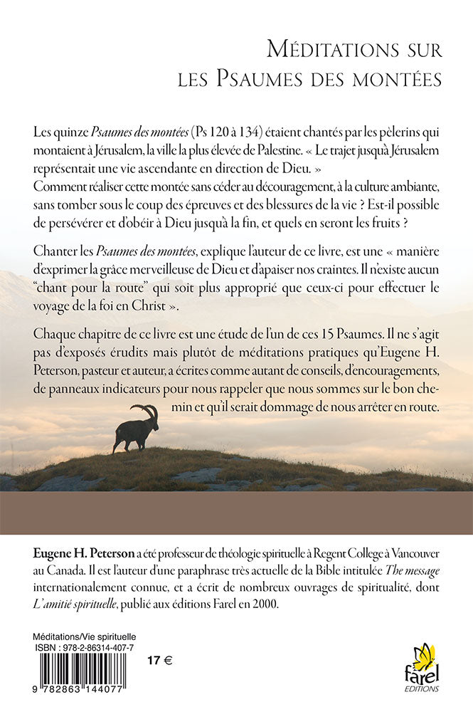 Chaque chapitre de ce livre est une étude de l’un de ces 15 Psaumes. Il ne s’agit pas d’exposés érudits mais plutôt de méditations pratiques qu’Eugene H. Peterson, pasteur et auteur, a écrites comme autant de conseils, d’encouragements, de panneaux indicateurs pour nous rappeler que nous sommes sur le bon chemin et qu’il serait dommage de nous arrêter en route.